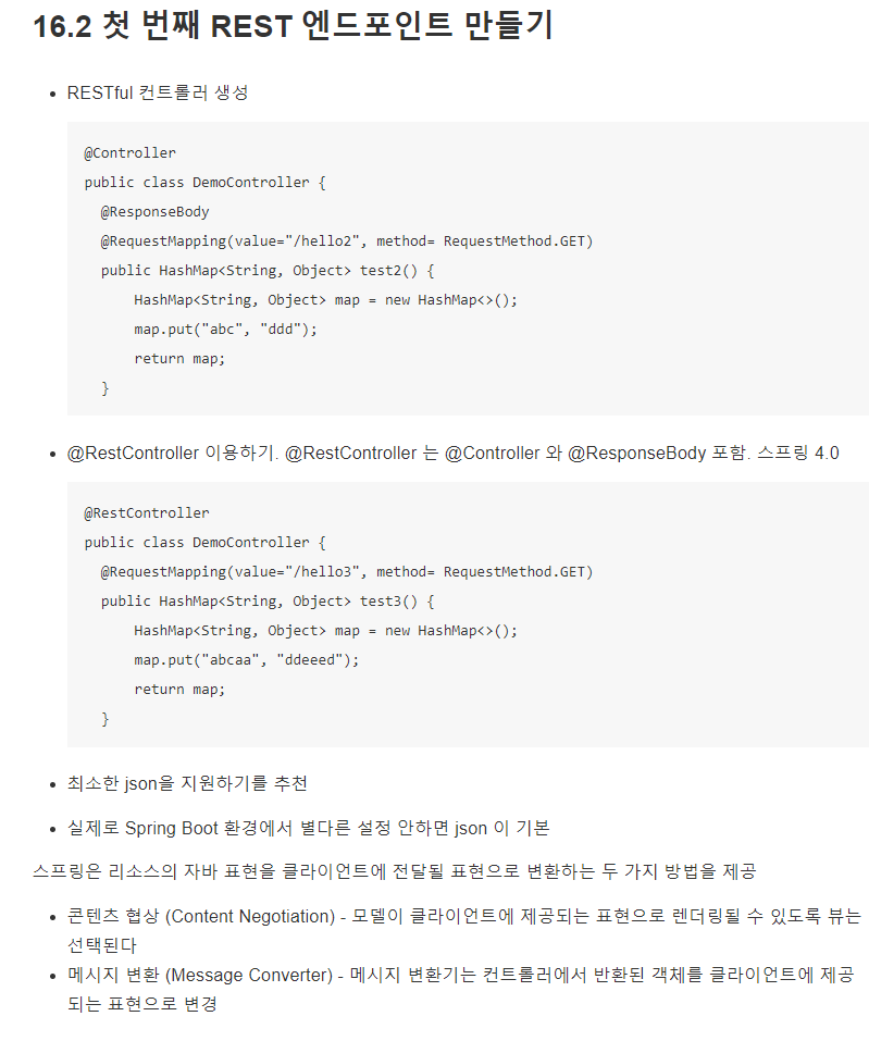 클라이언트단에서 서버단에 정보 요청을 보내고 응답을 JSON으로 받는 것은 @RestController의 이용을 통해 보장하였다. 하지만 Postman으로 테스트를 할 때는 contentType : 'application/json'으로 지정을 해야하는 것을 명심한다.