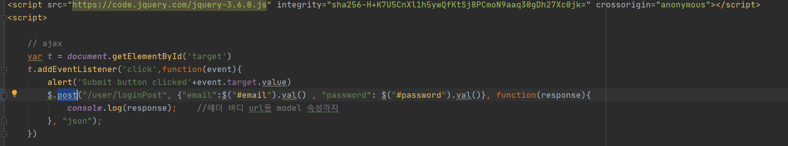 $.post로 ajax가 아닌 jQuery의 메서드를 사용해서 작업을 진행하려고 하였으나, form 형식으로 데이터가 전송되었다. JSON형식으로 요청을 보내기 위해서 ajax를 사용하였다..